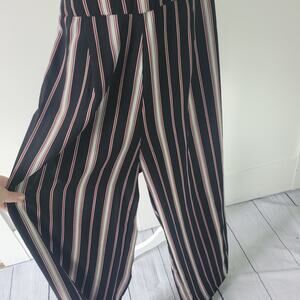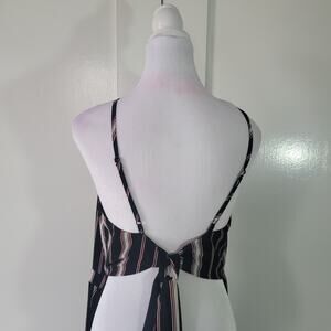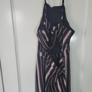 Japna Size M Striped Sleeveless High Neck Open Back Tie Detail Jumpsuit Casual