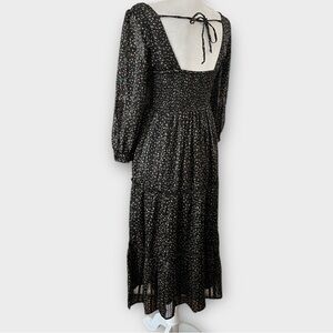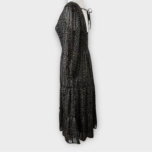 Japna Size Small Black Metallic Print Bohemian Peasant Tiered Midi Sheer Dress