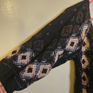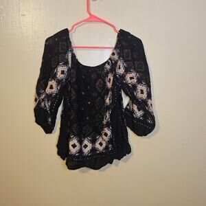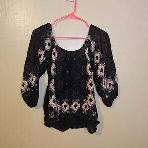 Japna Size Small S Boho Black Abstract Print Top Blouse Flowy Scoop Neck