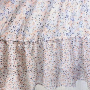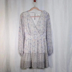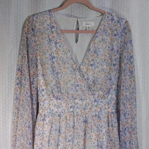 Japna Size XL cross front long sleeve tiered tie back blue/white/peach dress