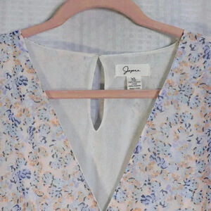 Elevate your wardrobe with this stunning Japna dress. The dress features a beautiful floral pattern in blue, white, and peach. It has a V-neckline, long sleeves, and a tie-back closure that accentuates your figure. The dress is made of lightweight, machine-washable polyester that makes it perfect for travel, parties, and casual outings. This knee-length dress has an empire waist and layered accents that add a touch of elegance to the overall look. It is lined and has an XL size that fits regular women's sizes. The dress is perfect for any season, be it winter, summer, fall, or spring. Add this colorful and stylish dress to your collection today!