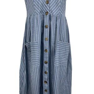 Japna Stripe A-Line Fit Flare Size Large L Blue Women Chambray