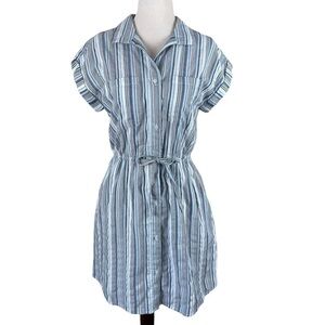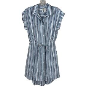 Japna Striped Button Down Shirt Dress Size S Ties at Waist Cuffed Sleeves NWT