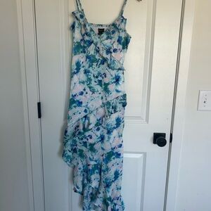Japna Summer Asymmetrical Blue and White Ruffle Floral Midi Dress Medium