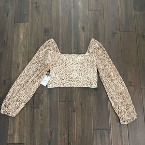 NWT Japna Tan Animal Print Long Sleeve Crop Top. Size Jr. L.