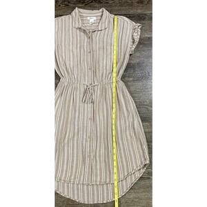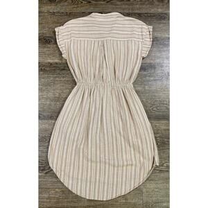 Japna Tan & Cream Collared Striped Button Down Short Sleeve Shirt Dress Sz S