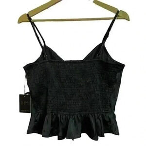 Japna Tank Women’s M Black Satin Spaghetti Strap Ruched Smocked Bodice Y2K NWT