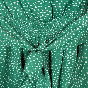 Japna Tiered Mini Dress Puff Sheer Sleeves Elastic and Tie Waist Green Size XS