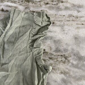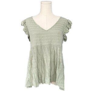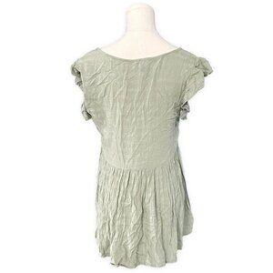Japna V-Neck Knit Tunic Top Sz M Moss Green Flutter Tiered Viscose Boho Peasant