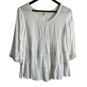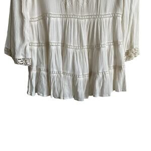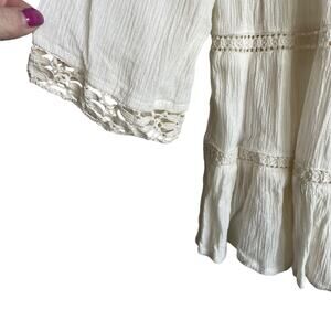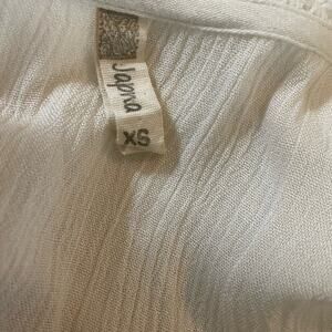 Japna Women Crop Top XS Ivory Embroidered Gauzy Crochet Inlet Boho Peasant Flowy