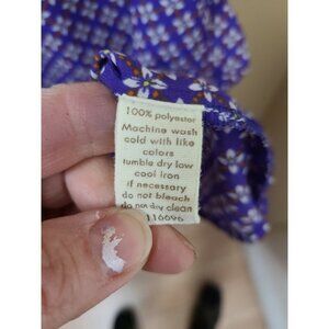 Japna Womens Floral Print Blouse Size Medium Purple Zip Back Short Sleeve Top