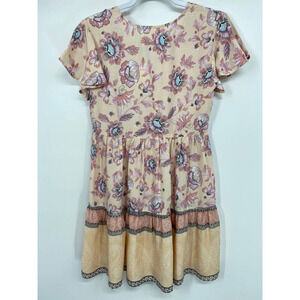 Japna Womens Pink Floral Patterned Flutter Sleeve Dress NEW XS