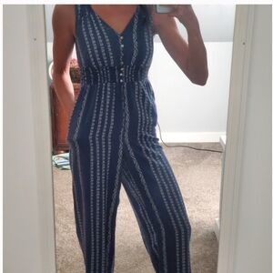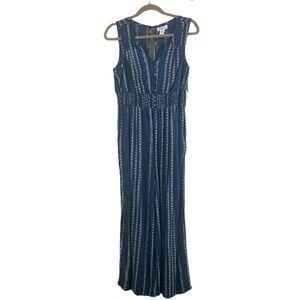 Japna Women's SZ L Printed Aztec Sleeveless Wide Leg Crop V-Neck Jumpsuit NEW