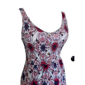 Japna Women's Smocked Dress in Patriotic Colors Body Con Fit and Flare Size S