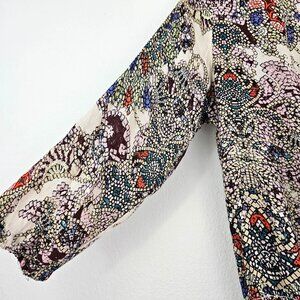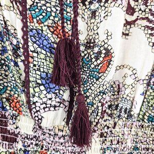 Japna Womens Sz M Vibrant Colorful Print Boho Top Tunic Tassel Hippie Blouse