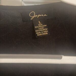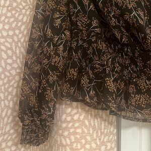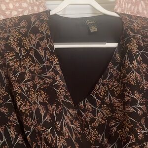 Japna Womens sz L Black Orange Floral Surplice Smocked Blouse
