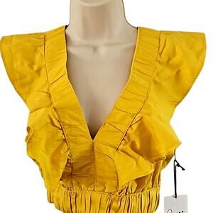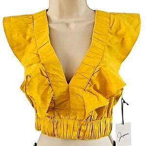 Japna Yellow Ruffle V-Neck Boho Crop Top Women’s Size Small NWT Sleeveless