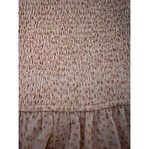 Japna beige smocked peplum tank top size large Pit to pit 14.5 laying flat unstretched Total length 22.5
