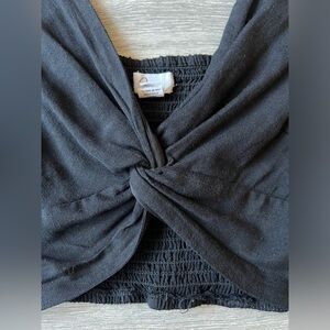 Japna cropped top Black Twist knit front Ruffle sleeve Smocked back Size S