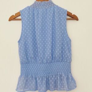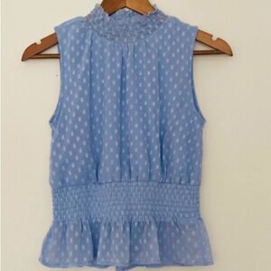 Japna sleeveless Smocked Mock Neck blouse Sheer Light Blue Medium