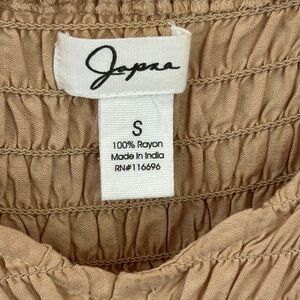 Japna tan short flutter sleeved smocked bohemian chic peasant top size S