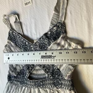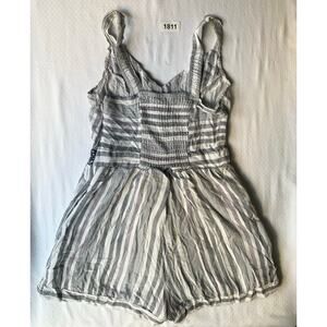 Japna women’s Sleeveless V-neck Short Romper size XS, Gray & White Stripes