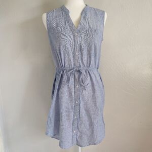 Japna Cotton Button Down Sleeveless Pin Stripe Midi Dress