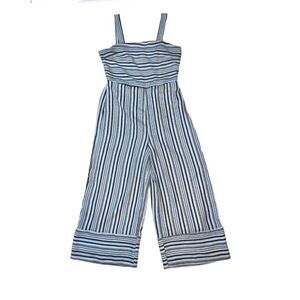 Cream and black striped cropped wide leg romper. Sleeveless. Thick straps. Smocked stretch back. Fully lined. 100% polyester. Size: small. NWOT.