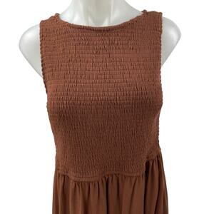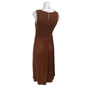 Japsa Women's Brown Smocked Sleeveless Pleated Fit & Flare Midi Dress Size XL