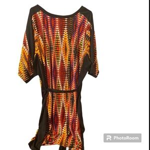 Jaqueline Design Studio NWT Plus Size 3x Pullover Belted Print Dress. Beautiful dress multicolored artistic print with black solid bordering, quarter length sleeves, round neck. In good condition. Made in India.