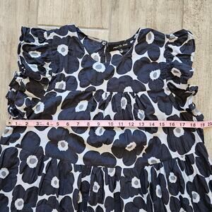 Jacquie the Label Babydoll Dress Blue Floral Flutter Sleeve Tiered Square Neckline Above Knee Length Shift Dress Pullover Style