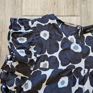Jaquie The Label Dress Womens Size S Blue Floral Flutter Tiered Square Neck Mini