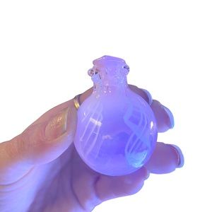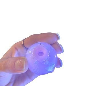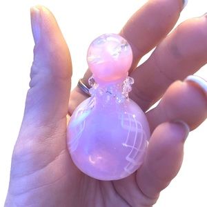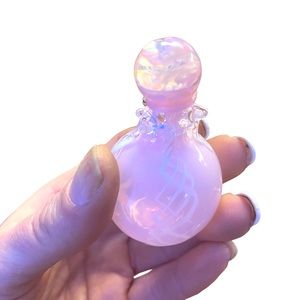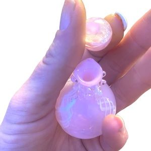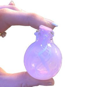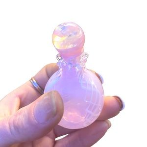 This is a unique, one of a kind hand blown boroscilicate glass jar. It is pink with hues of white.