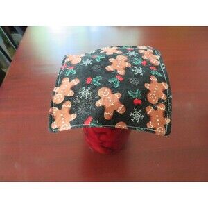 Jar Gripper, Handmade Jar Opener, Christmas Gingerbread Men. Cotton fabric with Christmas gingerbread men, 5-1/2 x 5-1/2 inch square jar grippers. The back side is made of brown shelf liner. Made to get a good grip on lids that are hard to open. CARE: Machine wash cold water. Lay flat to dry.
