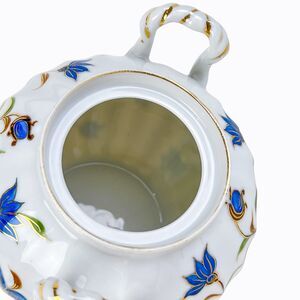 Jar Lid White Ceramic Blue Flowers Gold Trim Side Handles Decorative 4.75" Tall