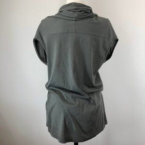 Jarbo twist front shawl collar a-line tee in olive green. Drop shoulder. Gently worn in good condition. Very generous size 36/small.