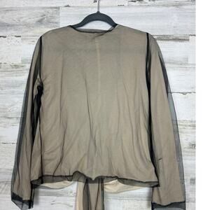 Jarbo Womens M Nude & Black Sheer Cotton Chiffon Tie-Waist Cardigan Dress Blouse