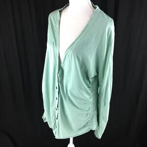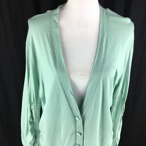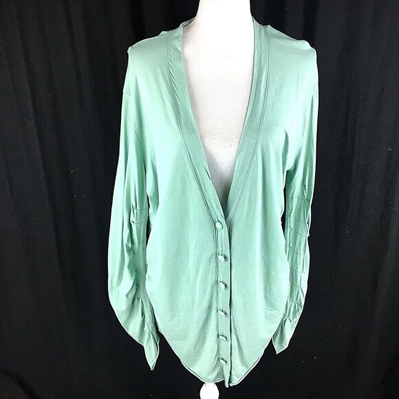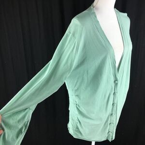 Jarbo Womens Thin Peru Cardigan Sweater Size M 38 Teal Blue Green Tiered Ruched