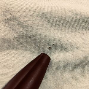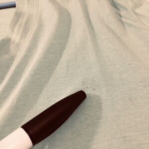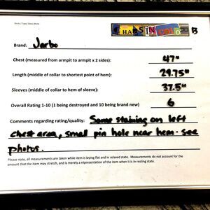 Please note the staining on the front chest region and the small pin holes by the hem - both are faint and minor, and would likely not be very noticeable. Color is less bright than when shown on the mannequin.