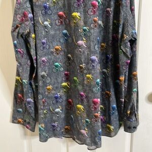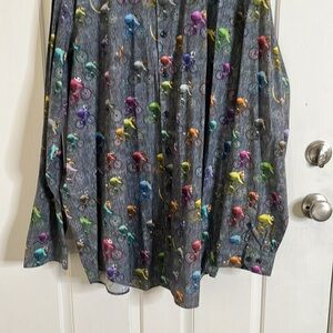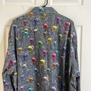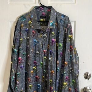 Jared Lang Animal Bicycle Button Shirt Men Size 3XLT Gray Racer Rider Biker Bike