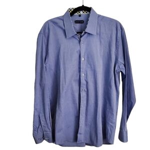 Jared Lang Blue Chambray Button Front Shirt Contrasting Blue Yellow Plaid Size L