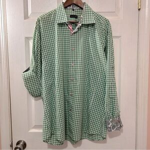 Jared Lang Button Down Shirt Green Pink Checkered Paisley Men's Size XXL Easter