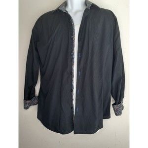 Jared Lang Button Up Shirt Mens L Large Black Geometric Flip Cuff Long Sleeves