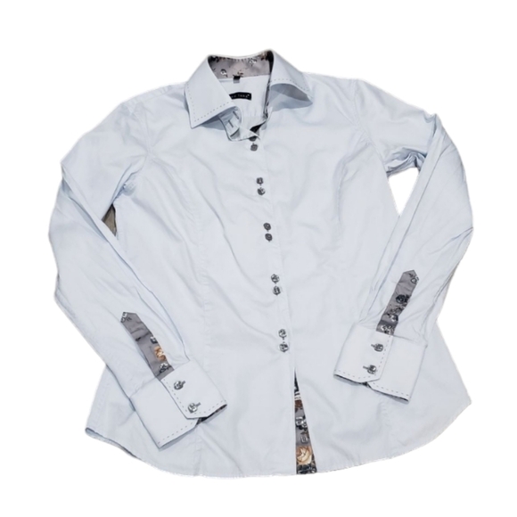 Jared Lang Designer button up shirt Women's Size 5 pale blue