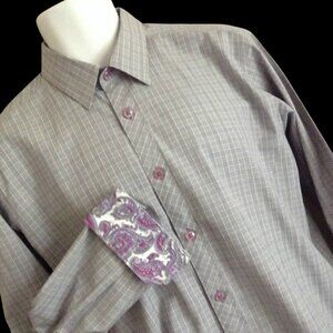 Jared Lang Shirt Gray Plaid Flip Cuffs Button Front