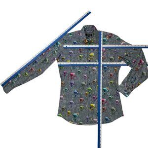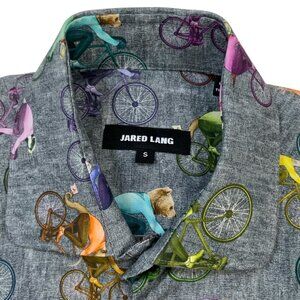 Jared Lang Mens Animal Bicycle Print Shirt S Navy Blue Button Front Long Sleeve