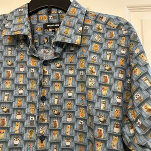Jared Lang Men's Owl Print Button Up Long Sleeve Shirt Size 2XL