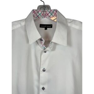 Jared Lang Men's Short Sleeve, Fitted, Pink Plaid Accent Cuff Sleeves, Size L