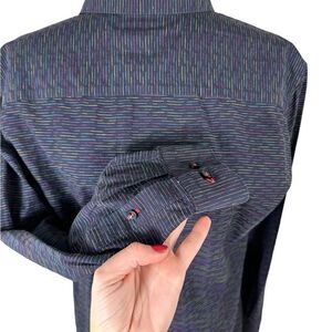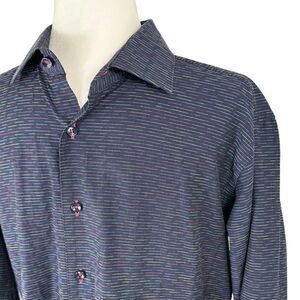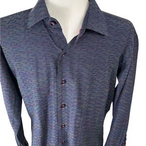 Jared Lang Navy Blue & Pink Striped Button Down Long Sleeve Dress Shirt