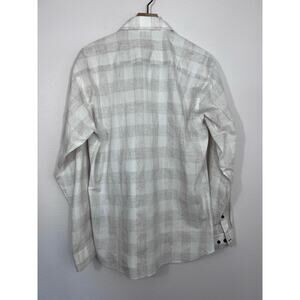 Jared Lang XL White Gray Plaid Button Up Shirt with Multicolor Flecks
